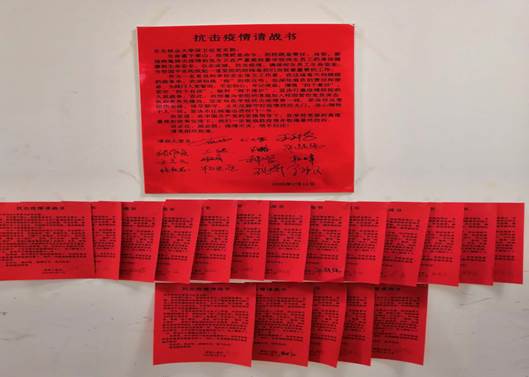 受益于党组织多年的教导培养,又经过“不忘初心、牢记使命”主题教育的再深造再洗礼,保卫处党支部早已成长为一支忠诚可靠、坚韧刚强的战斗集体。“苟利国家生死以,岂因祸福避趋之”,在学校受到疫情威胁的严峻时刻,保卫处党支部和广大党员充分发挥战斗堡垒作用和先锋模范作用,凝聚力量,扬起旗帜,为坚决打赢疫情防控阻击战提供了有力的政治保证和组织保证。递交抗“疫”请战书。面对汹涌而至的疫情,面对没有硝烟的战场,全体党员干部毫无惧色,挺身而上,自愿报名,主动请缨。支部委员带头,庄重而恳切的向组织递交了抗“疫”请战书 。赤红的请战书代表着赤诚的心,大家纷纷表示 “要坚决服从指挥,听从安排,时刻准备奔赴抗疫一线 ”,“哪里需要就往哪里上,哪里危险就往哪里闯,希望组织把我用在刀刃上”,表明了立场,表明了态度,时刻把学校师生生命安全扛在肩上,誓要与新冠病毒斗争到底。成立抗疫“党员突击队”。为发挥党员模范作用和尖兵作用,集中力量打攻坚战,支部将请战党员干部编入“党员突击队”,并授予突击队鲜红的队旗。有了队伍就有了力量,有了旗帜就有了方向。红旗在,阵地在;阵地在,我们就能牢牢掌握着斗争的主动权。处长丁胜利发号掷地有声的战前动员,“此番疫情是对我们意志和能力的一次大考,同志们要勇往直前,不辱使命,发挥保卫处战斗集体的优良传统和坚毅品格,坚决打赢疫情防控阻击战、歼灭战。”突击队员们神色峻毅,摩拳擦掌,迅速转化成一颗颗“倔强”的螺丝钉,时刻准备坚实的拧到防控疫情斗争中最危险最需要的地方。设立防控“党员先锋岗”。将“党员先锋岗”设立在校园各主要出入口,防疫斗争的最前沿。党员突击队成立后即刻派往进驻,上岗执勤,冲锋在防疫一线。队员们佩戴党章,亮明身份,忠于职守,态度鲜明。对来往人员车辆仔细查验,做好登记;对不符合要求的情况坚决劝阻,妥善处理。在高高飘扬的红旗下,党员突击队誓要将自己的血肉之躯化为铜墙铁壁,以钢铁般的意志和大无畏的勇气牢牢守好防控大门,坚决不让新冠病毒踏入校园一步!