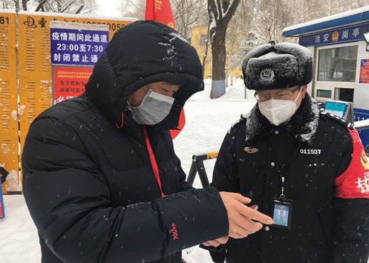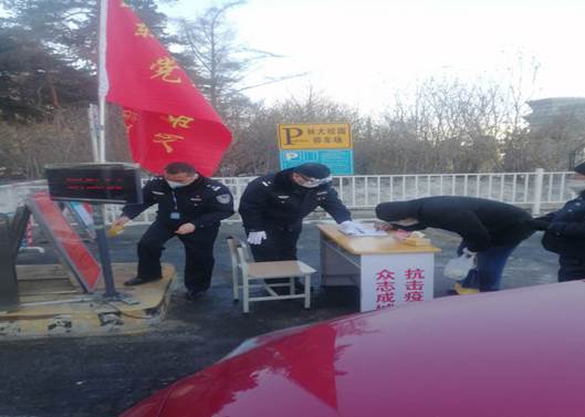 “勇挑重担,不畏艰险”,一直是保卫处战斗集体的精神放射和力量彰显。疫情发生后,同志们放弃休假,牺牲小“我”,服务大“家”,全身心投入到疫情防控工作中。每日连续站岗执勤达7小时以上,不停的解释说明,反复的抬杆放杆,口干舌燥,双腿打颤早已是家常便饭。在对过往人员查验过程中,还会经常遇到不理解、不配合,甚至诽谤非议、言行激烈的情况出现。对于此类问题,执勤人员从不回避,从未退缩,忍受委屈,直面危情。对不明实情真相的群众耐心劝阻,积极疏导;对扰乱防疫秩序的行为据理力争,坚决抵制 。除了与疫情的无形搏斗,一线人员还要抵御恶劣的天气环境。二月中旬的持续低温,夜间温度时常达到零下25摄氏度,21、22日又连降大雪,冷酷异常的天气严重影响着工作开展。然而低温冻结不了燃烧的战斗意志,风雪吹压不垮坚实的铮铮铁骨。凛冽寒风他们从不叫苦,长时久站他们从不叫累,透心冰凉他们从不叫屈,他们依然挺拔屹立在战疫前线,用实际行动践行着履职尽责、一心为公的铮铮誓言。在保卫处疫情防控的长期工作中,不断涌现出众多“闪光点”和“正能量”。除夕、初一本是合家团圆的日子,技防科科长佟庆志主动请战,独自守在监控中心两昼夜,时刻关注校园内外可疑情况,打好疫情防控前哨战;王健、王璐两名同志除参与正常执勤值岗外,还要负责组织协调、统计报表、筹集物资、分发配给等纷繁的事务性工作,经常加班加点到深夜,虽然疲惫憔悴,可他们从无怨言,脸上永远都保持着那份执着热情;张惟宏同志把围挡的运输、装卸、安装等工作结实的扛在肩上,挥汗忙碌于封闭道路的基础工作中,克服防疫期间、节日期间雇工难找等多重困难,撸起袖子,直接动手,拖着微胖的身躯穿梭于道路树林间,攀爬高树,俯身绑扎,严丝合缝安装围挡,精选位置固定标牌,牢牢的建立起人员车辆把控“钢闸”;交通科刘海成同志,每日以处为家,全天候守卫在抗疫一线,哪里有漏洞就去哪里维修,哪里有需要就化为援助力量,是名副其实的防疫“及时雨”;对讲机里最繁忙的就是负责校警队工作的邵毅强同志,早已沙哑的喉咙依然不断调配着保安力量,反复强调着保安言行,在疫情防控工作中起到了至关重要的联系衔接作用。保卫处团队里这样的榜样和典范数不胜数,着实验证了字字触心的那句话,“哪有什么岁月静好,只不过有人在为我们负重前行”。