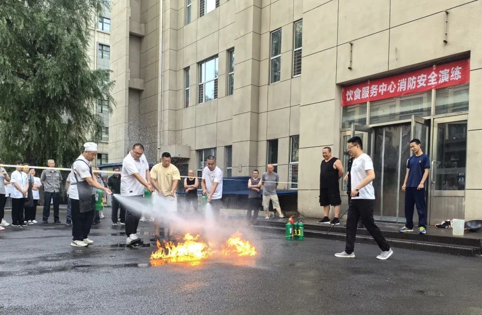 为了保障学校食堂消防安全,7月17日14时,饮食服务中心联合保卫处开展消防安全培训及演练活动。