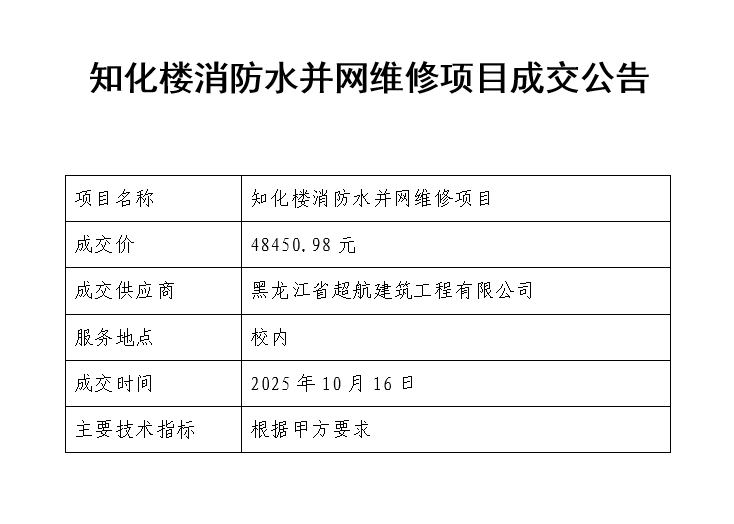 知化楼消防水并网维修项目成交公告