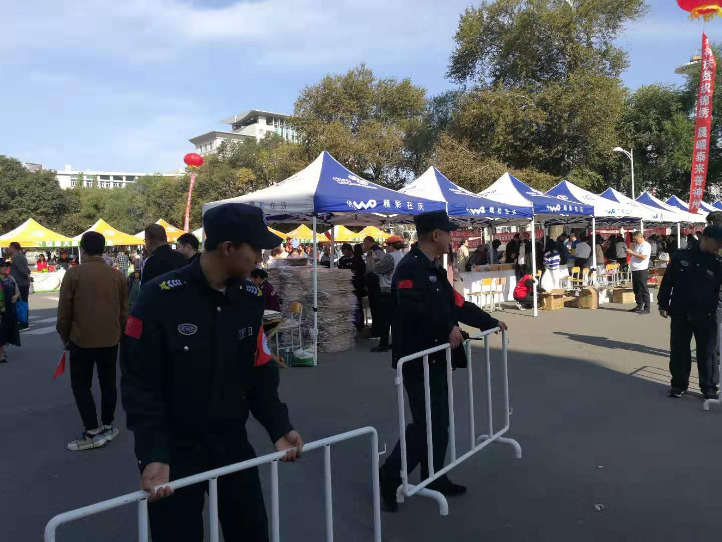 为保障商品展销会顺利进行,保卫处周密部署、多措并举:指派专人于30日凌晨为展品运送车辆指引方向、疏导入场;安排人员协助相关单位布置会场,同时对现场全程布控、保障安全;积极开展志愿服务工作,帮助教职工提携物品、搀扶引路,提供“爱心送达” 服务。此外,支部的同志们还不约而同自愿参与采购农副产品,为参展商户献爱心、送温暖,以积极的姿态倡导响应国家精准扶贫的政策号召。
